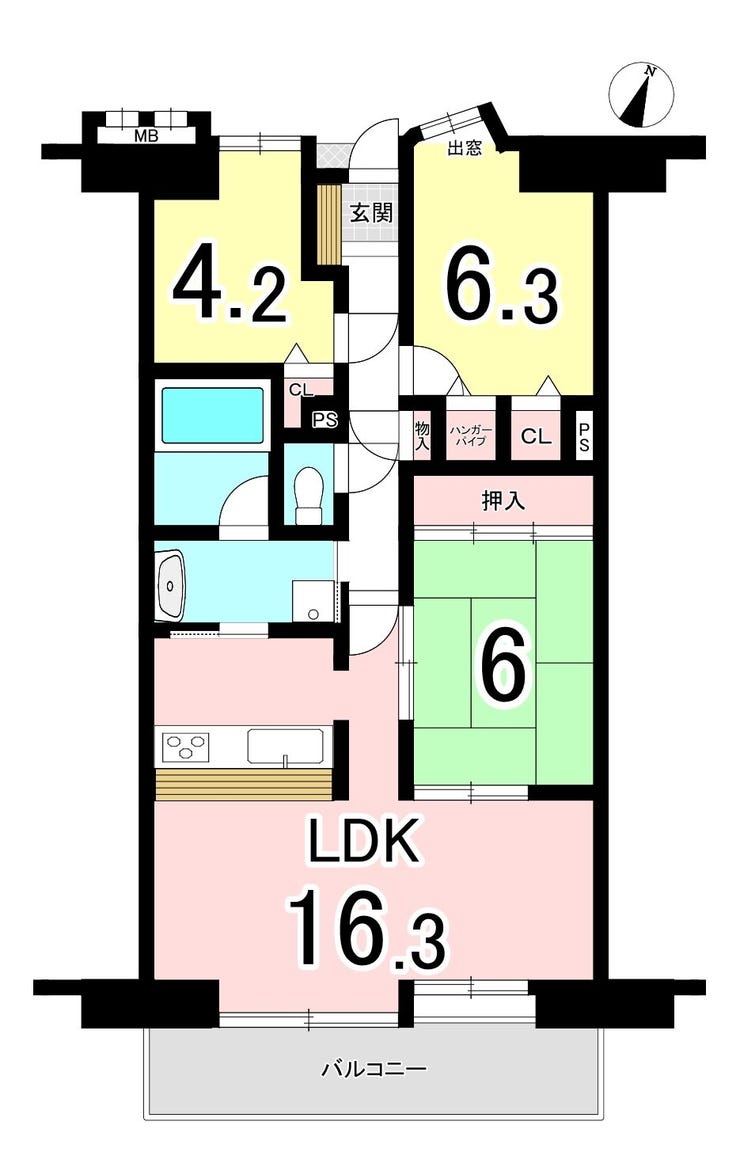 | 主要採光 | 南東向 | バルコニー | 南東向13.46㎡ |